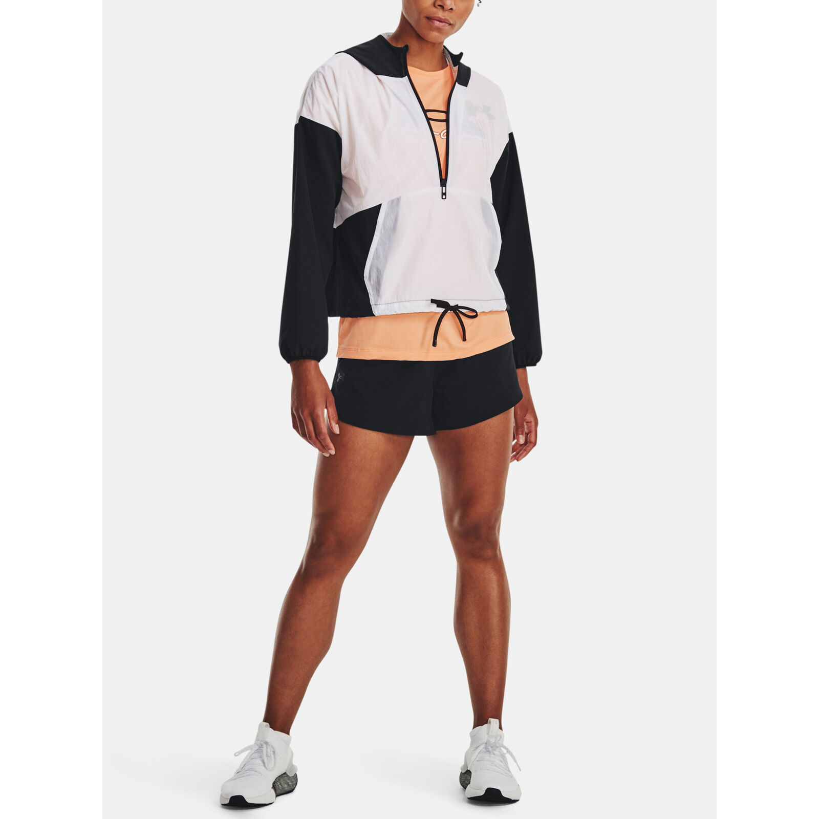 Az UA Storm technológia taszítja a vizet anélkül, hogy csökkentené a légáteresztést.Könny, tartós anyag hullámos felülettel és sztreccs anyaggal a kényelem és a mozgékonyság érdekében.Hálós bélés a kapucnin és a test felsõ részén a jobb légáteresztés érdekében.Elülsõ kenguru zseb.Praktikus elülsõ ½ cipzár a könnyebb fel- és levétel érdekében.Zsinórral állítható alsó szegély a biztonságos illeszkedésért.Alacsonyabb vállszegély.