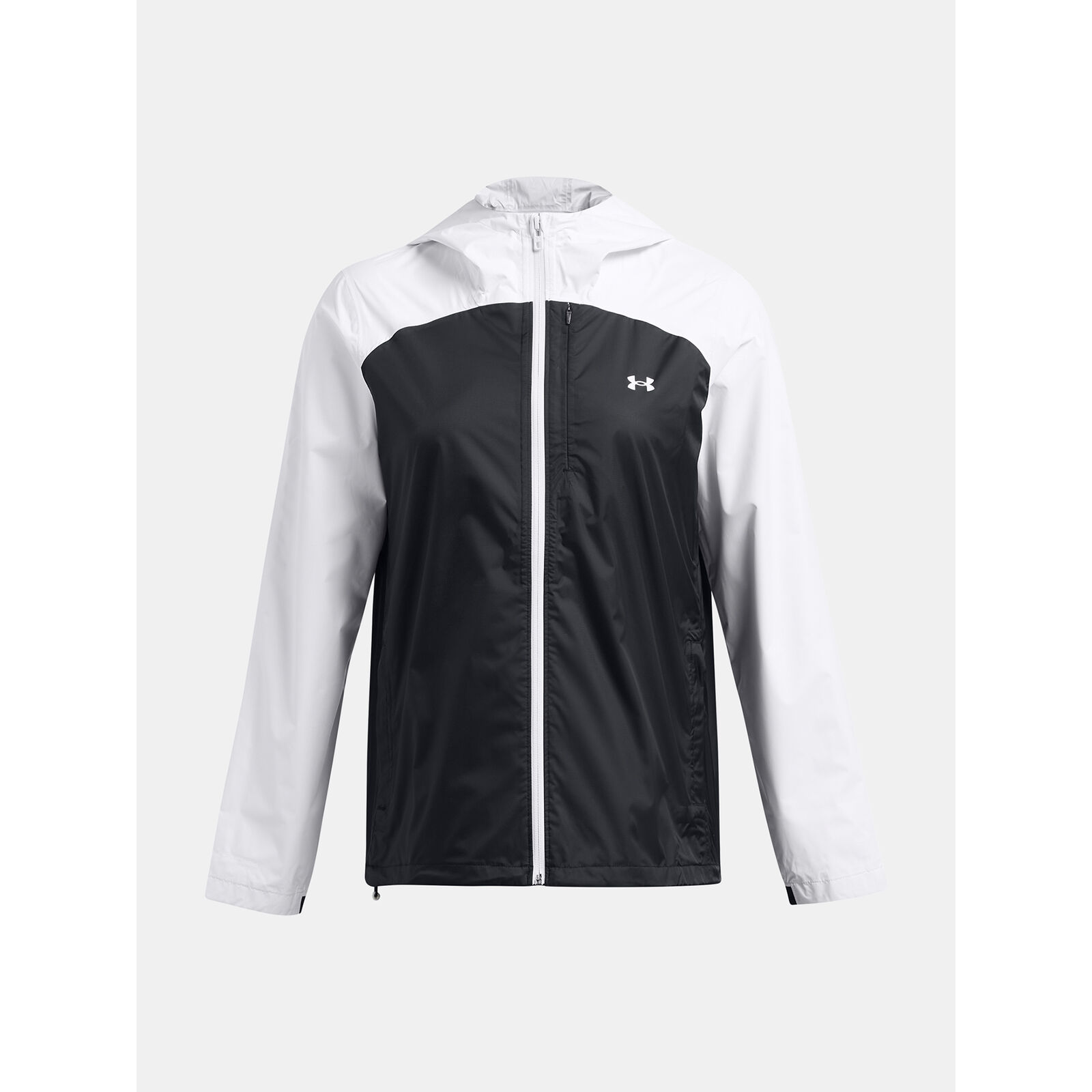 Az UA Storm technológia taszítja a vizet anélkül, hogy csökkentené a légáteresztõ képességet.Légáteresztõ, kétréteg szövet teljesen ragasztott varratokkal.Állítható kapucni és alsó szegély a biztonságos illeszkedésért.Szellõzõnyílás a háton a jobb légáteresztés érdekében.Biztonságos, cipzáras kézzsebek és bal oldali mellzseb.A fõ szövet legalább 90%-ban újrahasznosított nylont tartalmaz, a szegélyek és a részletek kivételével.Fluormentes víztaszító kezelést használ.