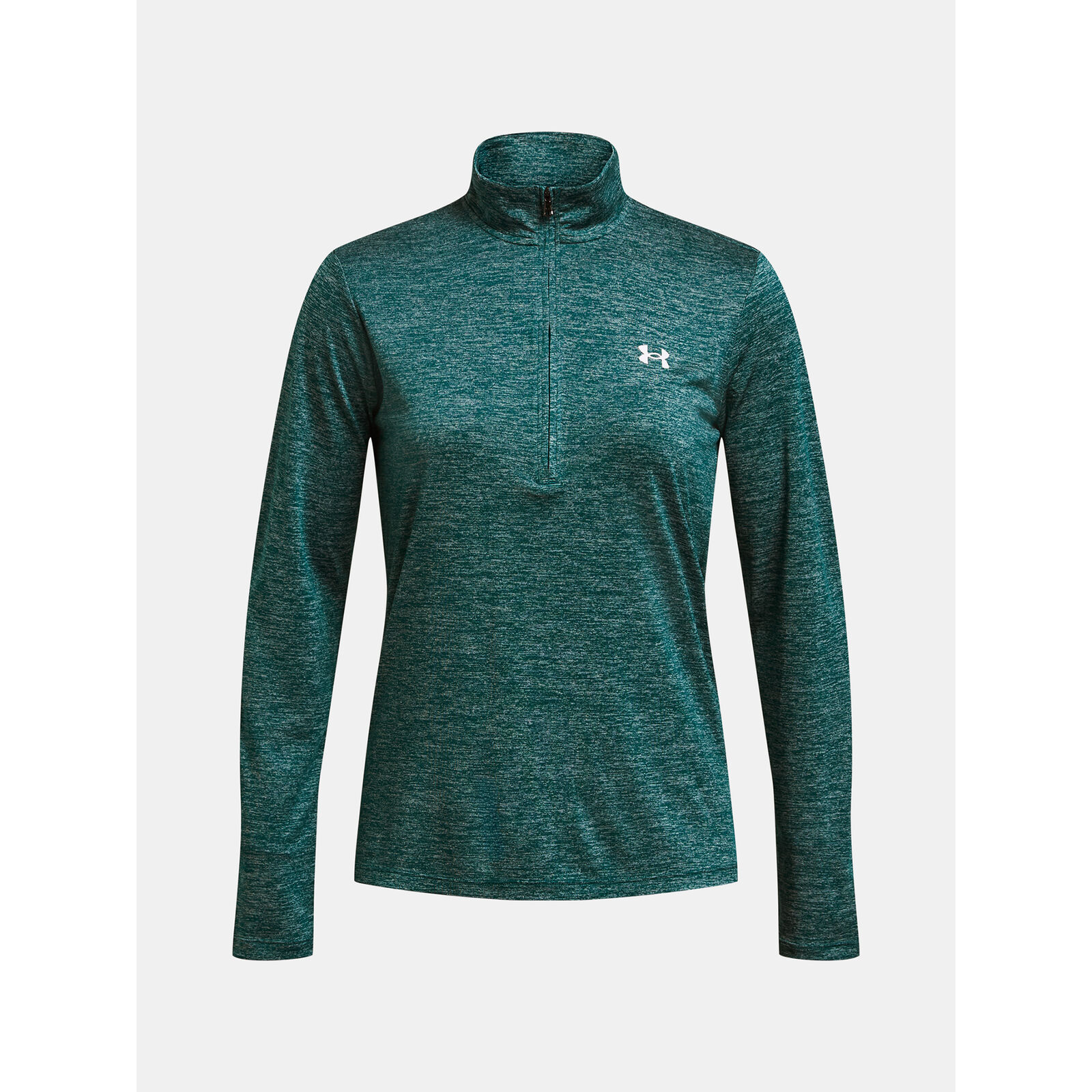 Az UA Tech anyag gyorsan szárad, nagyon puha és természetesebb érzetet kelt.Az anyag elvezeti az izzadságot és nagyon gyorsan szárad.Praktikus elülsõ ½ cipzár a könnyebb fel-/levételhez.A szagkontroll technológia minimalizálja a szagokat.A fõ anyag legalább 30% újrahasznosított poliésztert tartalmaz, a szegélyek és a részletek kivételével.