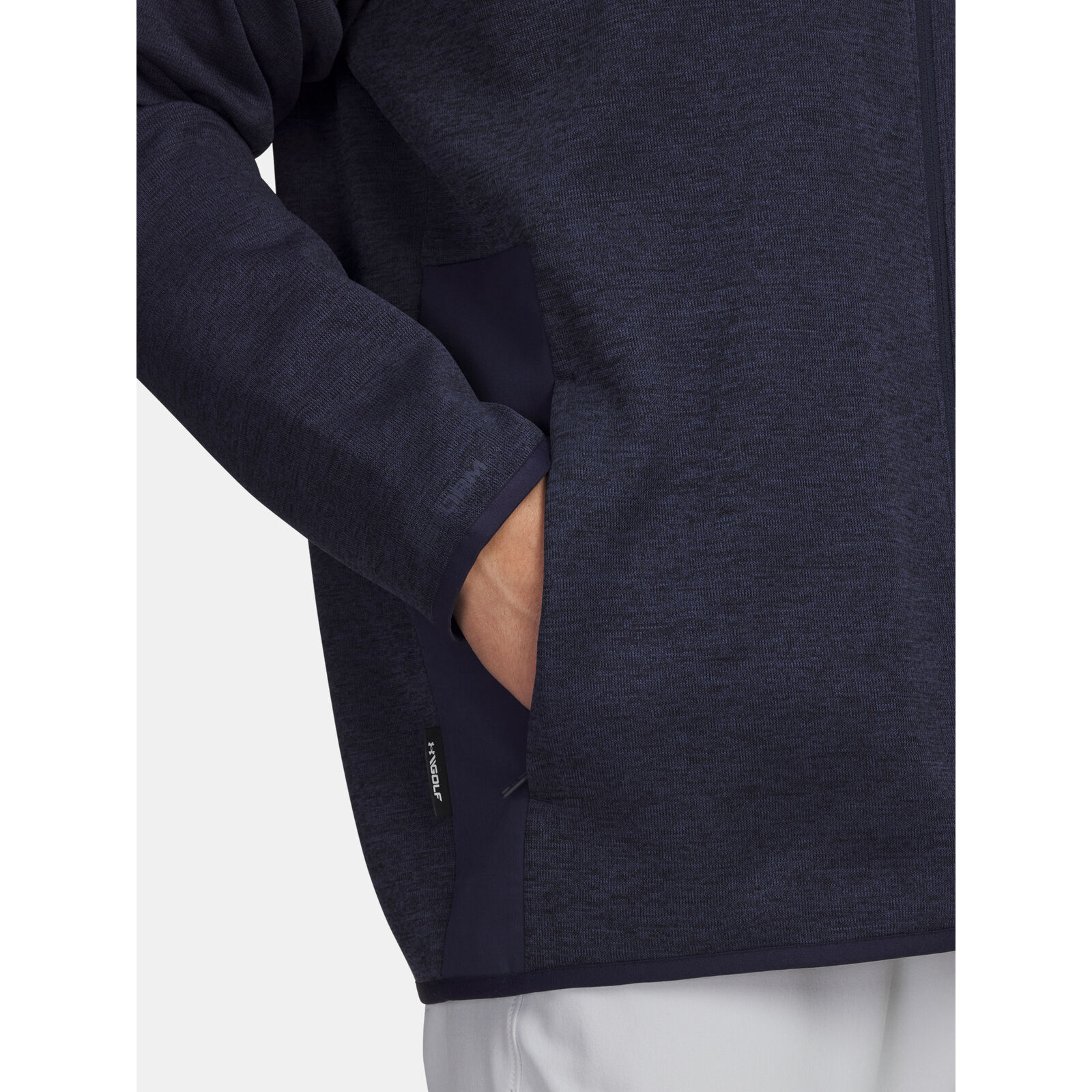 Az UA Storm technológia taszítja a vizet anélkül, hogy csökkentené a légáteresztõ képességet.A melírozott megjelenés SweaterFleece szövet puha, kefélt belsõvel rendelkezik, elasztikus anyaggal a tökéletes mozgásszabadságért.Biztonságos, cipzáras zsebek a kézen.Részlet a mandzsettákon, az alsó szegélyen és a galléron.