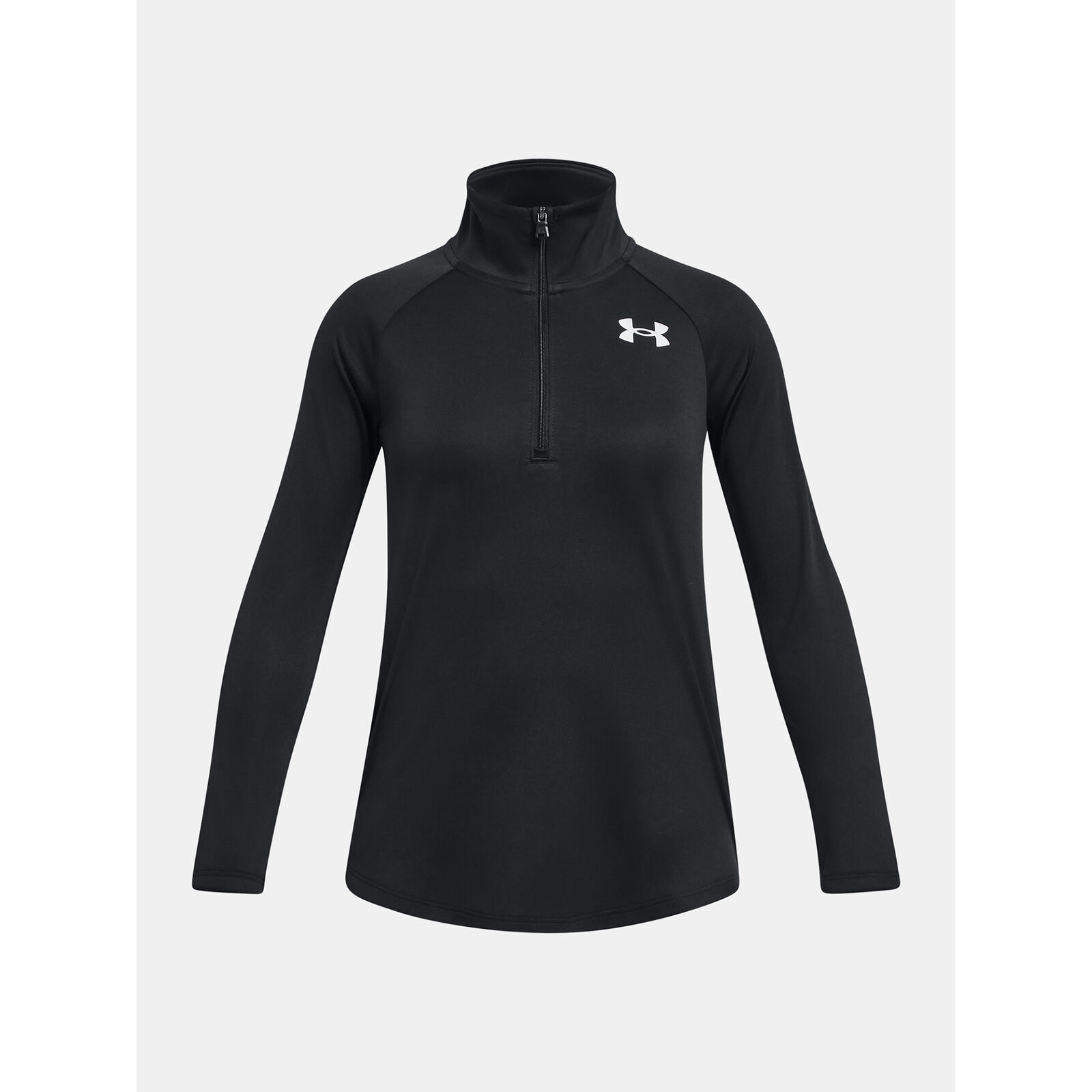 Az UA Tech szövet gyorsan szárad, nagyon puha és természetesebb érzetet kelt.Az anyag elvezeti az izzadságot és nagyon gyorsan szárad.Praktikus elülsõ ½ cipzár a könnyebb fel-/levétel érdekében.