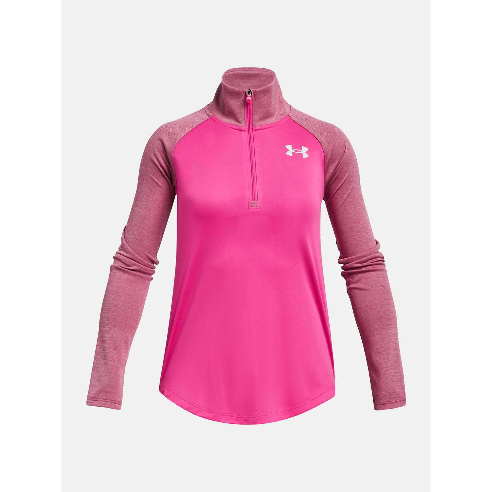 Az UA Tech szövet gyorsan szárad, nagyon puha és természetesebb érzetet kelt.Az anyag elvezeti az izzadságot és nagyon gyorsan szárad.Praktikus elülsõ ½ cipzár a könnyebb fel-/levétel érdekében.