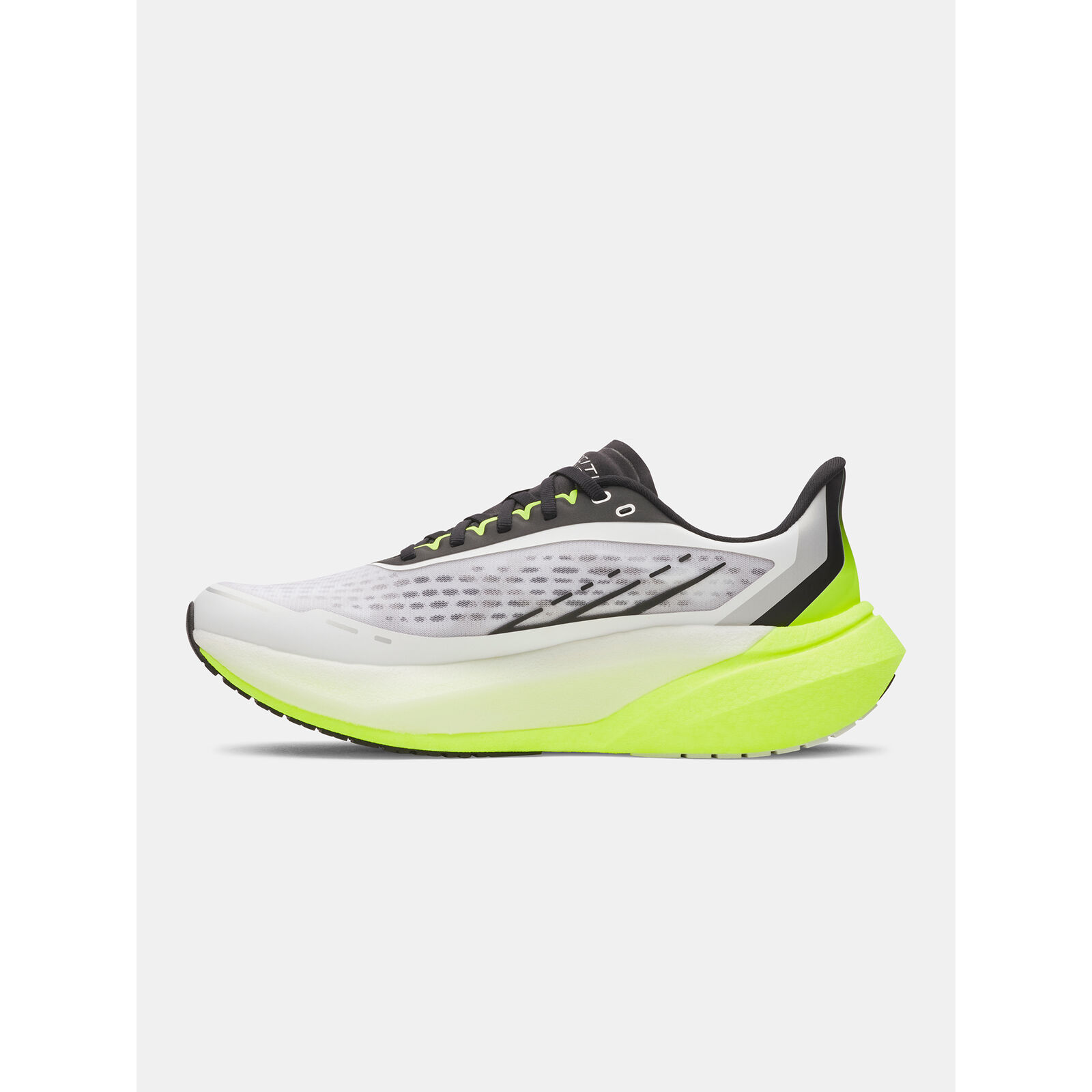 Áttetszõ mono hálós felsõrész könny és légáteresztõ, és feltárja a belsõ megerõsítést a lábközép- és elülsõ részen.Hagyományos gallér- és nyelvkonstrukció a legjobb illeszkedésért.Új UA HOVR+ hab teljes hosszában könnyebb és puhább, amely tökéletes ütéscsillapítást biztosít a hosszú futások során.Áttetszõ középtalp keret bizonyos tartást biztosít, miközben feltárja a belsõ UA HOVR+ habot.