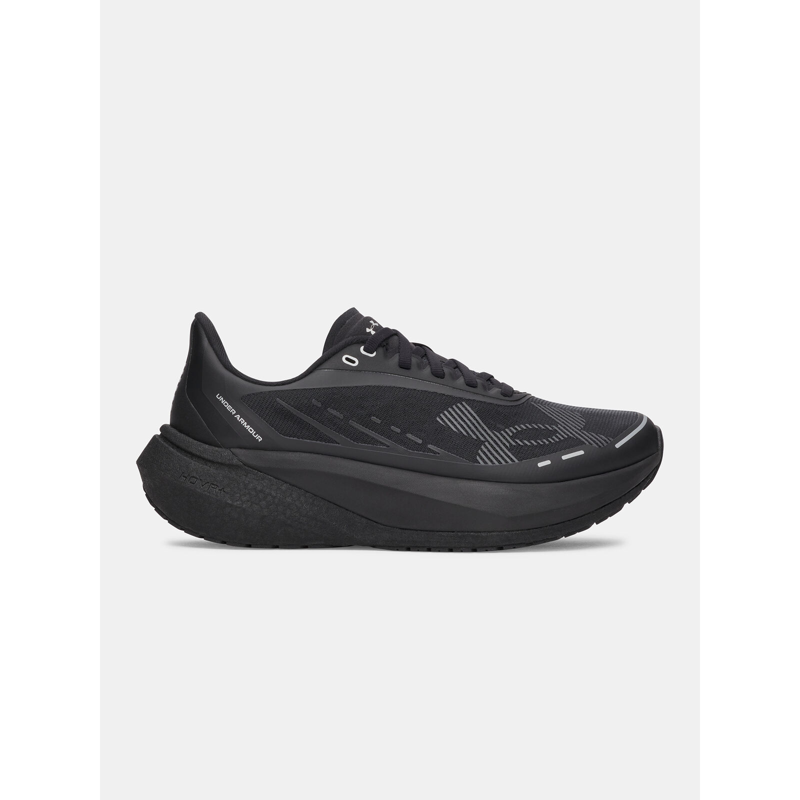 Áttetszõ mono hálós felsõrész könny és légáteresztõ, és feltárja a belsõ megerõsítést a lábközép- és elülsõ részen.Hagyományos gallér- és nyelvkonstrukció a legjobb illeszkedésért.Új UA HOVR+ hab teljes hosszában könnyebb és puhább, amely tökéletes ütéscsillapítást biztosít a hosszú futások során.Áttetszõ középtalp keret bizonyos tartást biztosít, miközben feltárja a belsõ UA HOVR+ habot.