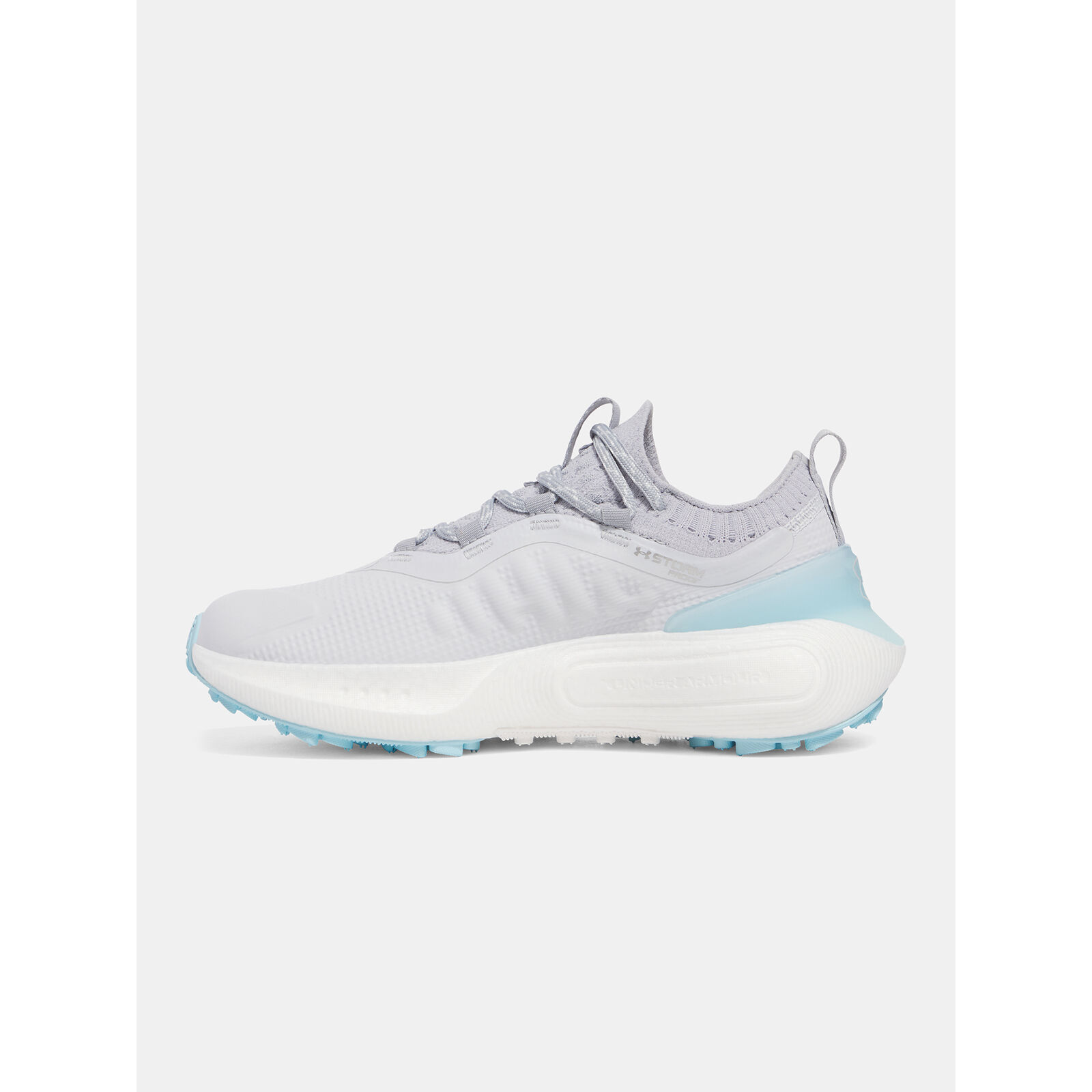 A TPU-val bevont formázott habszivacsból készült puha felsõrész, kötött, egyrészes, zokniszer résszel a kényelmes talajfogás érdekében.A könny, vízálló NeverWet membrán szárazon és hvösen tart még nedves napokon is.TPU saroktámasz és sarokszorító a könny fel- és levétel érdekében.A rendkívül rugalmas UA HOVR+ párnázás elnyeli az ütéseket, visszaadja az energiát és segít elõrejutni.Tartós gumitalp csúszásgátló mintázattal.